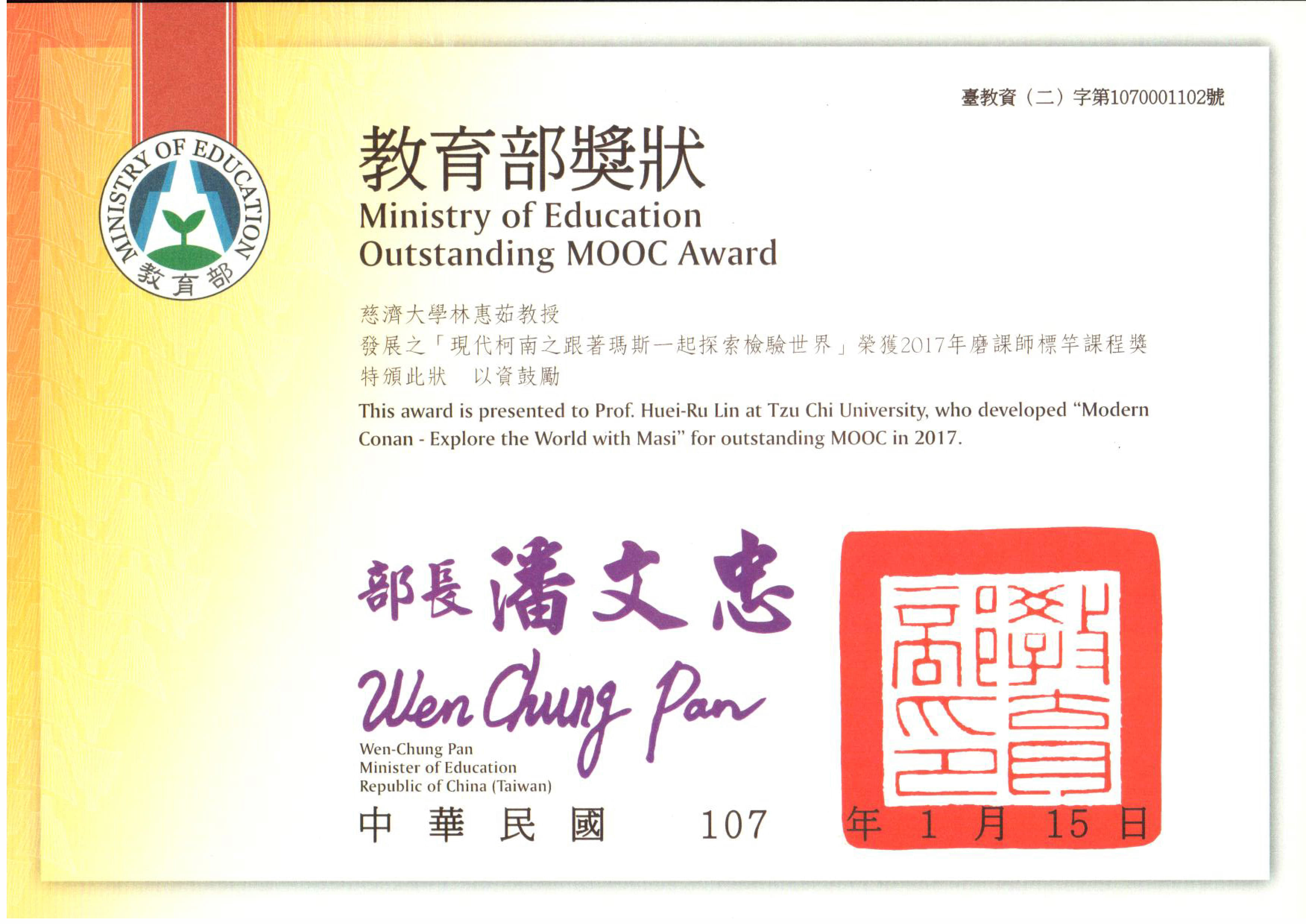 本課程獲 教育部磨課師標竿課程肯定